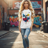 Ce T Shirt streetwear femme met en avant une danseuse pleine dâĂ©nergie, sublimĂ©e par des Ă©clats de couleurs intenses â bleu, rouge et jaune â qui rappellent lâart urbain et le graffiti. CouronnĂ©e de symboles royaux, cette illustration incarne la libertĂ©, la puissance et la fĂ©minitĂ© affirmĂ©e.